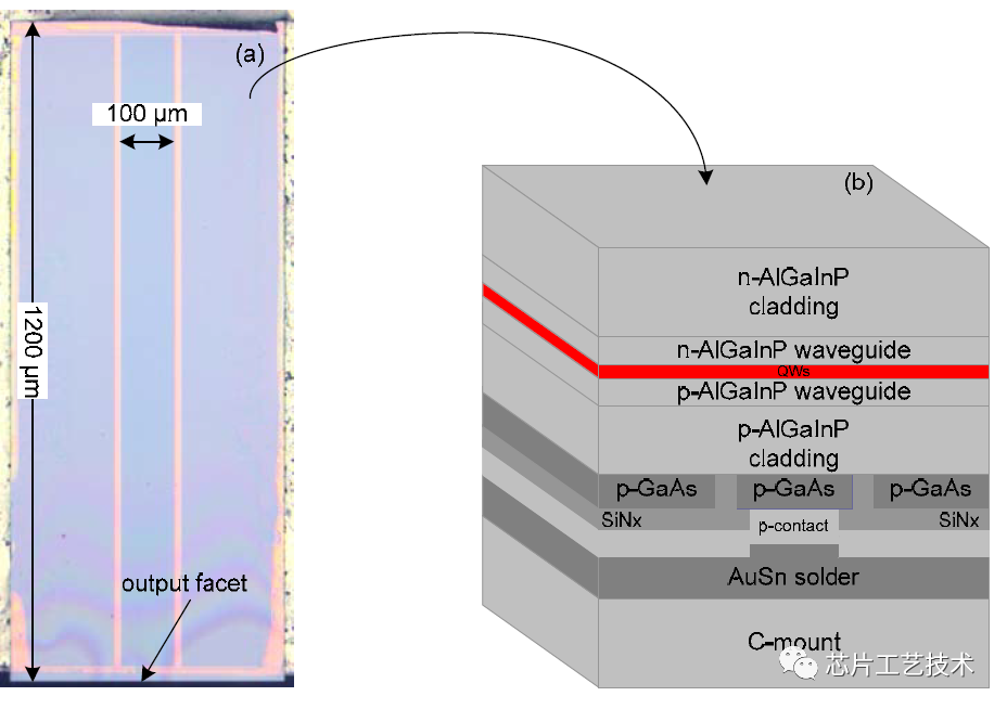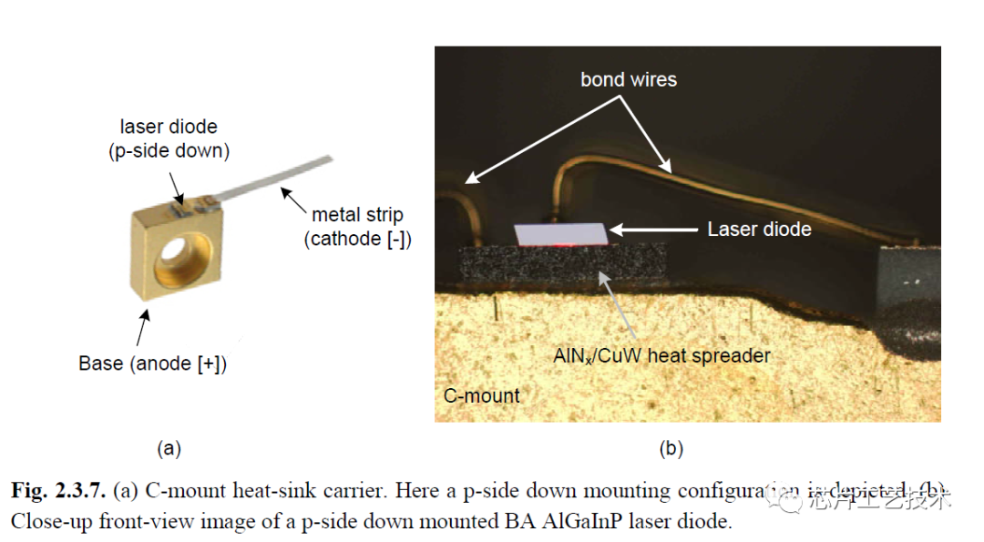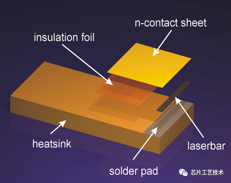 因此为了散热效果,需要把P面朝下,和热沉直接接触。因为有源区更靠近P面,有源区距离P面的距离一般在200nm以内,到N面大概有90um。因此为了让热更短距离的传到到热沉上,把热沉做正极,上表面做负电极。