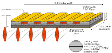 为了得到更大功率、散热效果还可以的激光器,人们常用一整条Bar条封装成激光器。