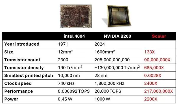 从1971年Intel 4004微处理器的正式发布,到2024年英伟达(NVIDIA)Blackwell B200 芯片的推出,计算能力实现了惊人的 2.17 亿倍增长。