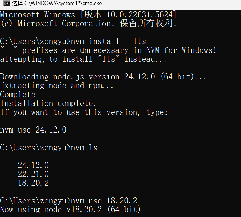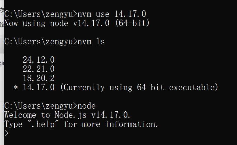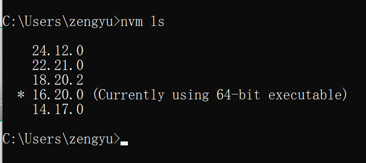 然后再使用这个命令行就可以直接切换使用指定版本的node.js了