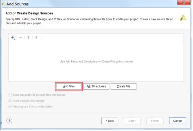 7.3 在Add or Create Design Sources页面中选择‘Add Files’;