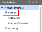 1) 在Vivado界面左侧Flow Navigator中展开PROJECT MANAGER,选择‘Settings’;