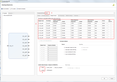 5.3.2 选择‘Output Clocks’,设置7路输出时钟(100MHz、25MHz、12.5MHz、25MHz、50MHz、75MHz、100MHz)