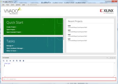 1) 双击桌面图标打开Vivado 2017.2,或者选择开始>所有程序>Xilinx Design Tools> Vivado 2017.2>Vivado 2017.2;