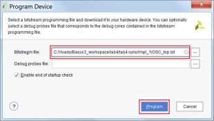 5) 检查弹出框中所选中的bit文件,然后点击Program进行下载。