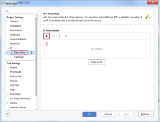 2) 弹出窗口中,在左侧Project Settings中展开IP一项,选择‘Repository’,点击右侧的添加IP;