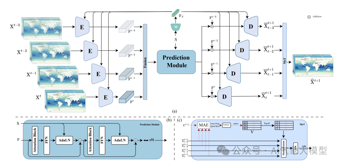 ▪ 核心思路:让AI“更懂时间”。模型并行汇聚多时间窗(短-中-长)的历史信息,通过自适应选择与加权,抑制连续预报中的误差滚雪球。