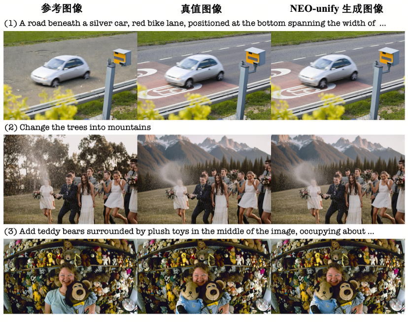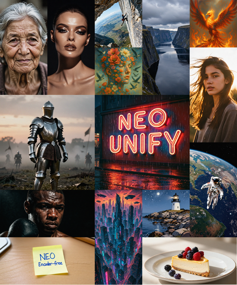 我们能否更进一步,让AI像人一样,直接从最原始的像素和文字中,统一地进行学习、理解与生成?这正是NEO-unify尝试回答的根本问题。它摒弃了传统的VE与VAE,首次构建了一个真正的端到端原生统一模型,在同一个架构内直接处理像素与文本,并在此基础上协同完成理解与生成任务。初步研究成果令人振奋,该设计在保持强大语义理解与细节恢复能力的同时,显著提升了训练与计算效率。