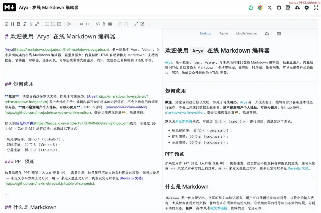 [1] Arya - 在线 Markdown 编辑器: https://github.com/nicejade/markdown-online-editor