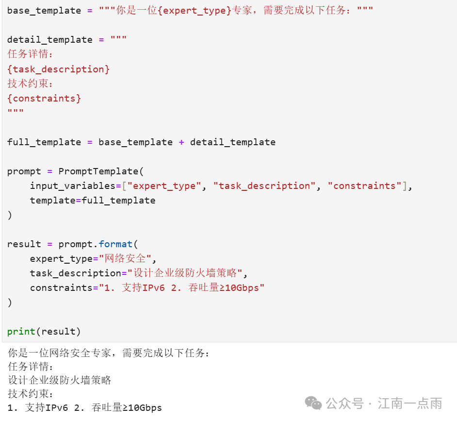 通过拼接多个模板生成复杂提示。