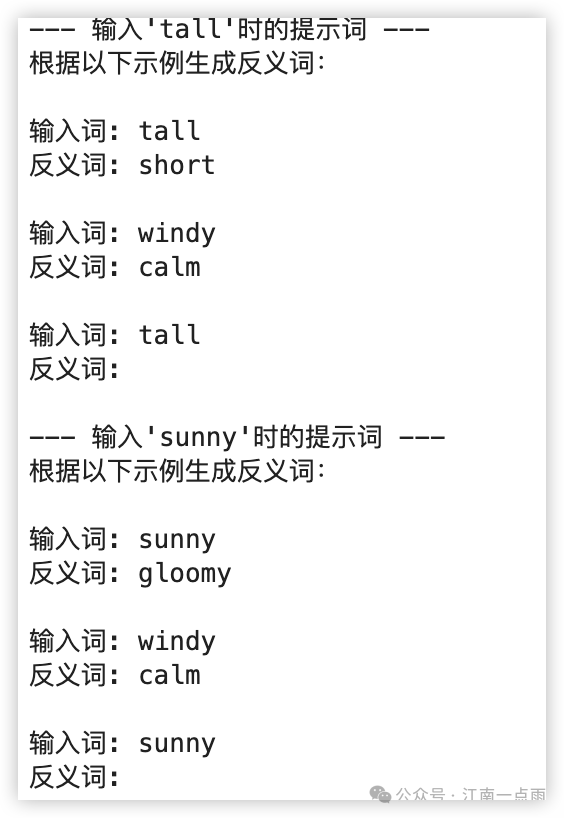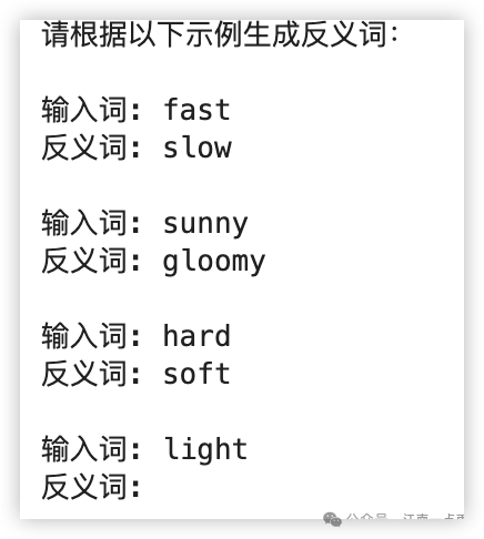 prefix="请根据以下示例生成反义词:",