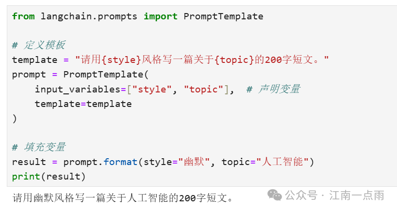 result = prompt.format(style="幽默", topic="人工智能")