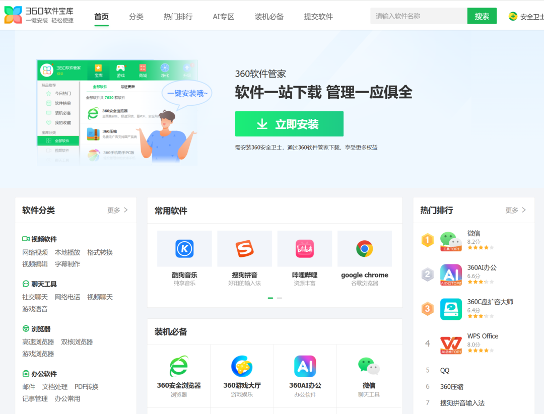 360想必大家都知道,都有听说过,360安全浏览器,360杀毒软件都是一流的1当然,360旗下也有一个360软件宝库,也是一个提供免费下载的平台,都是官方安装包纯净版,没有捆绑,也是非常推荐的