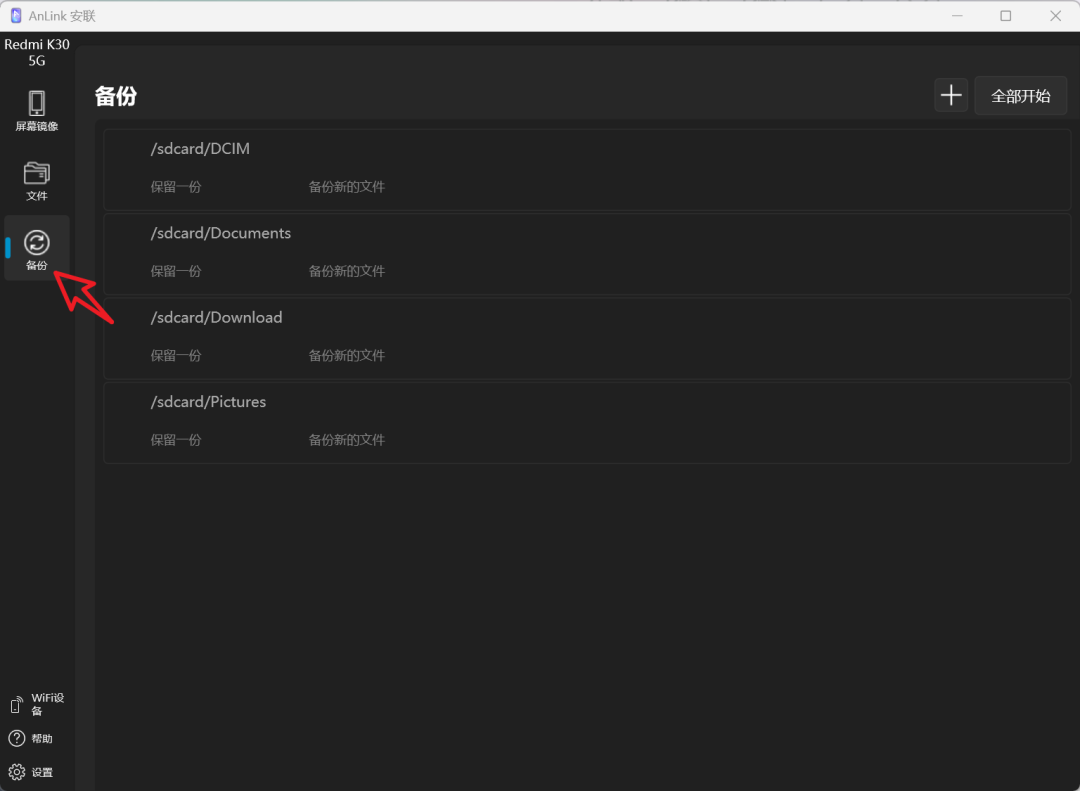 然后也可以备份手机的一些内容,让我想到以前的豌豆荚了。