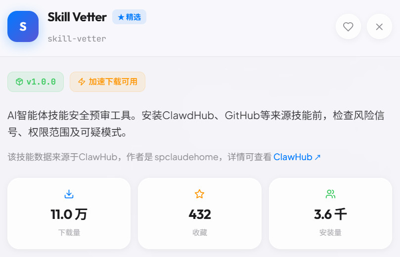 现在clawhub上的技能已经超过3万个了,上面的技能参差不齐,还有一些技能是有被投毒的。为了我们的龙虾能相对安全的运行。需要在安装和运行skill的时候进行一些安全检查。这个技能就是可以简单的投入解决大部分基础的安全问题。