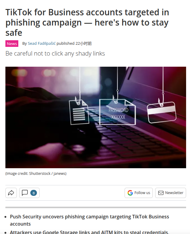 单次钓鱼同时攻陷 Google 与 TikTok 账号;