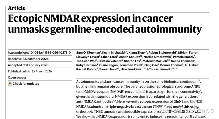 第20篇HD文章(正刊)--癌症中异位表达的NMDAR揭示了种系编码的自身免疫性
