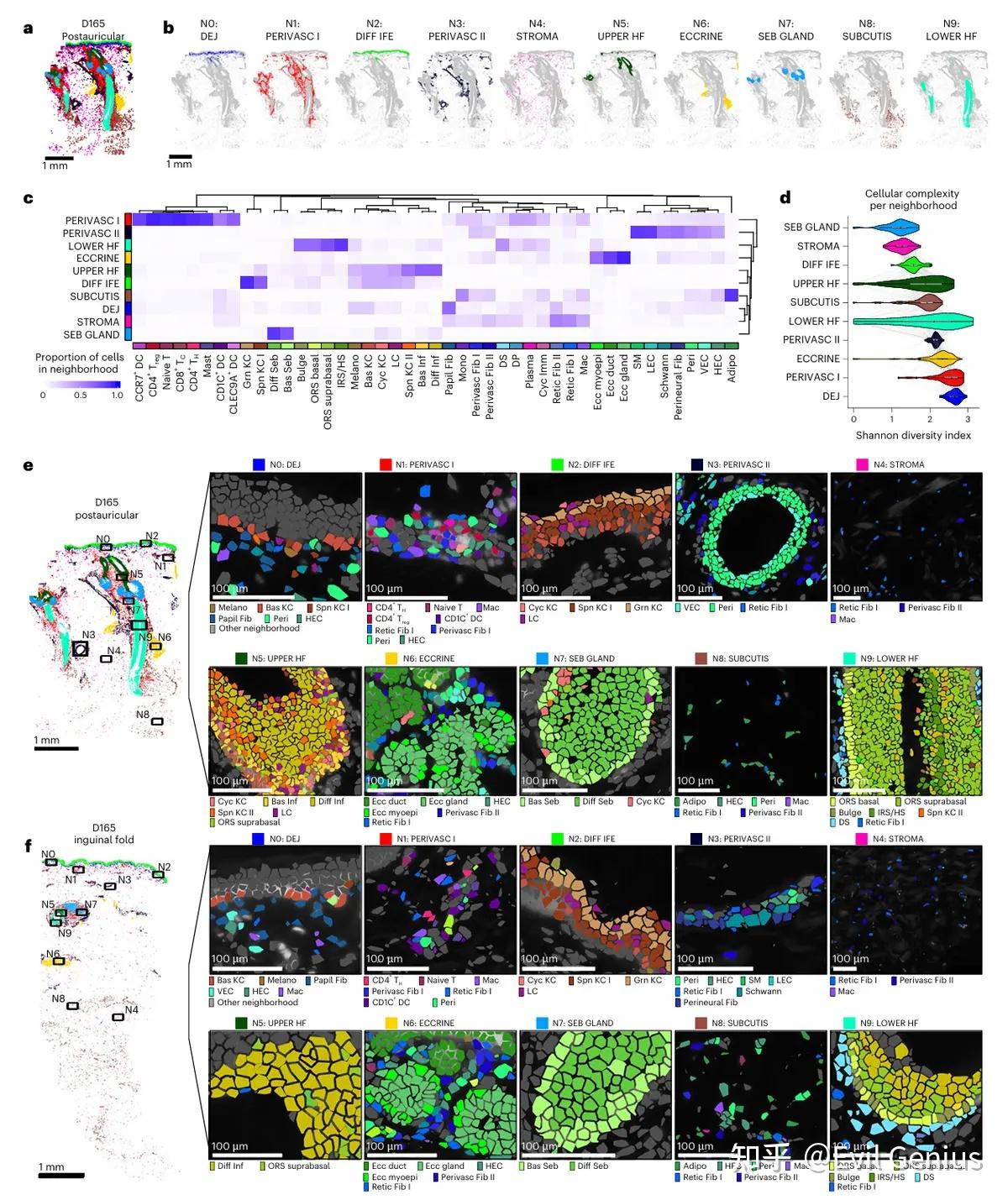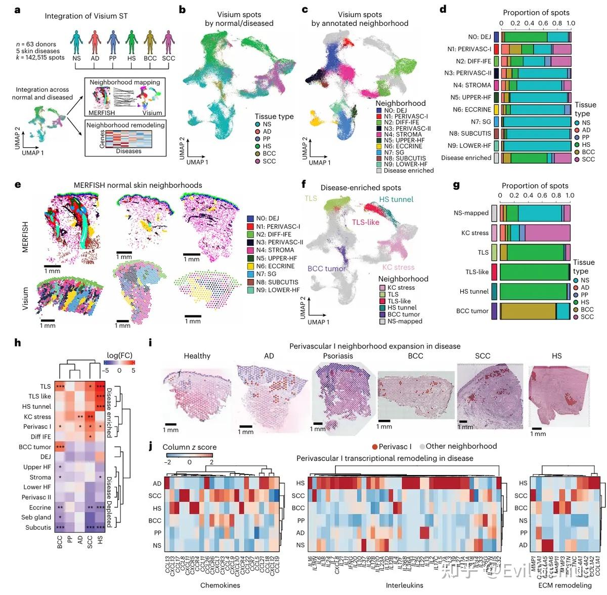 邻域重塑模式:皮肤病同时伴随着稳态邻域的扩增(如PERIVASC I)和转录组重塑。 治疗启示:PERIVASC I作为核心的免疫调节空间区域,靶向调节血管周围的细胞动力学可能为皮肤病治疗提供新策略。 共享与特异并存:不同疾病既有共同的邻域改变(如PERIVASC I扩增、KC应激),也有独特的病理结构(如HS的上皮隧道、BCC的肿瘤特异聚类)。