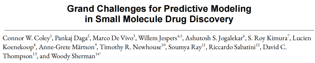 论文信息 标题:Grand Challenges for Predictive Modeling in Small Molecule Drug Discovery 通讯作者:Woody Sherman(PsiThera, Watertown, MA) 参与机构:MIT · 耶鲁大学 · 意大利技术研究所 · 格罗宁根大学 · 莱顿大学 · 乌普萨拉大学 · Chemical Computing Group 等,共 14 位作者 数据来源引用截止:2026 年 3 月(Dimensions AI)