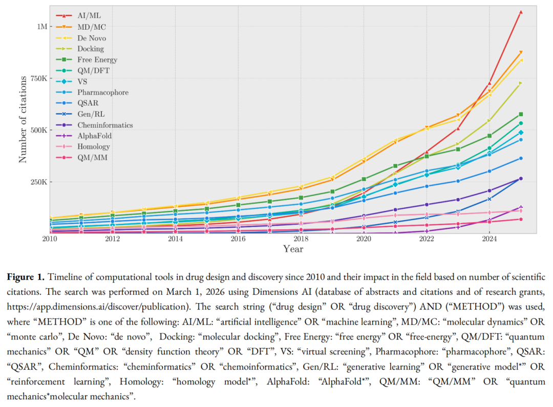 论文通过 Dimensions AI 数据库对 2010 年以来主要计算方法的引用量进行了系统追踪(图 1),揭示了一个清晰的规律:
