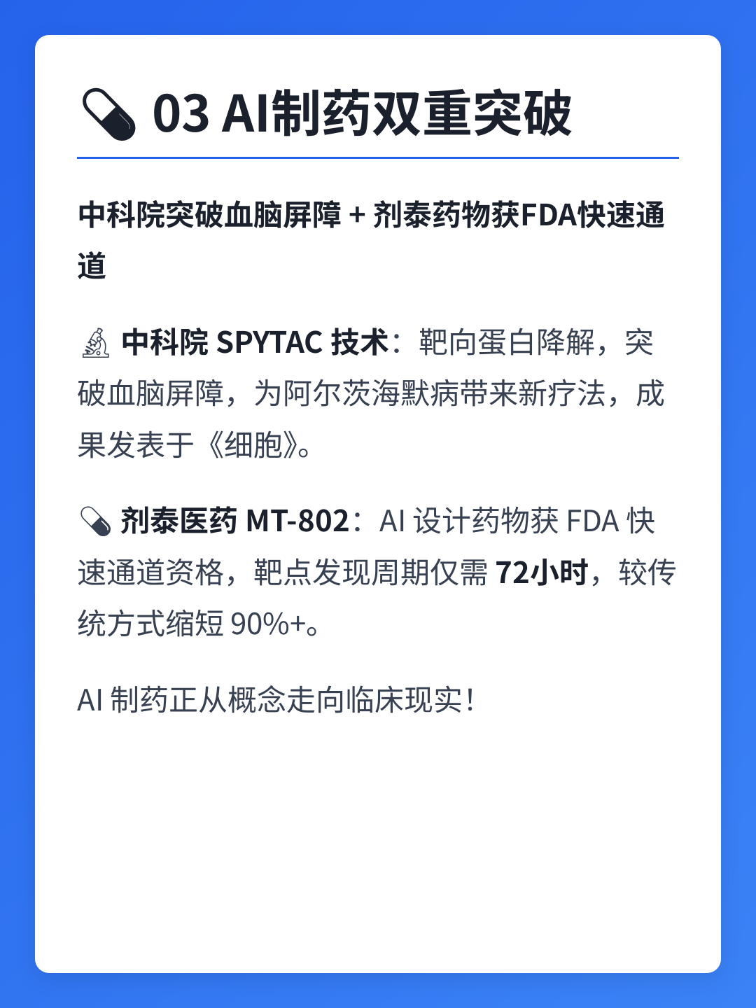 03AI医疗💊 AI制药双重突破:中科院突破血脑屏障,剂泰药物获FDA快速通道
