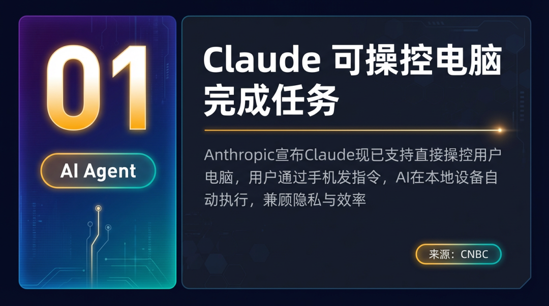 Anthropic 宣布 Claude 现已支持直接操控用户电脑来完成任务,用户只需通过手机向 Claude 发送指令,AI Agent 就会在本地设备上自动执行操作。这一功能被视为对抗爆火的开源 AI Agent 框架 OpenClaw 的直接回应,兼顾隐私与效率。Anthropic 还收购了 Vercept 以强化屏幕理解能力。