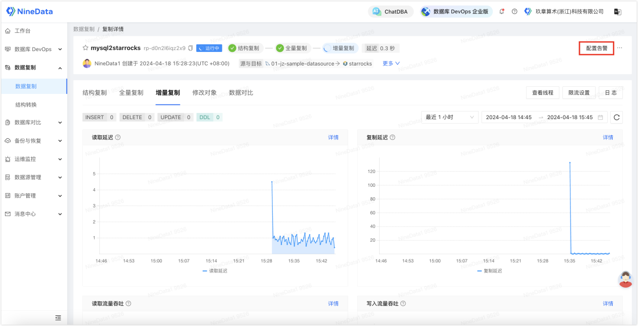 NineData 在这个场景里的差异,更接近于把很多团队原本要自己拼装的环节,前置成一条产品化链路:建表初始化、DDL 跟随、全量与增量协同、数据对比、限流、告警、线程视图。