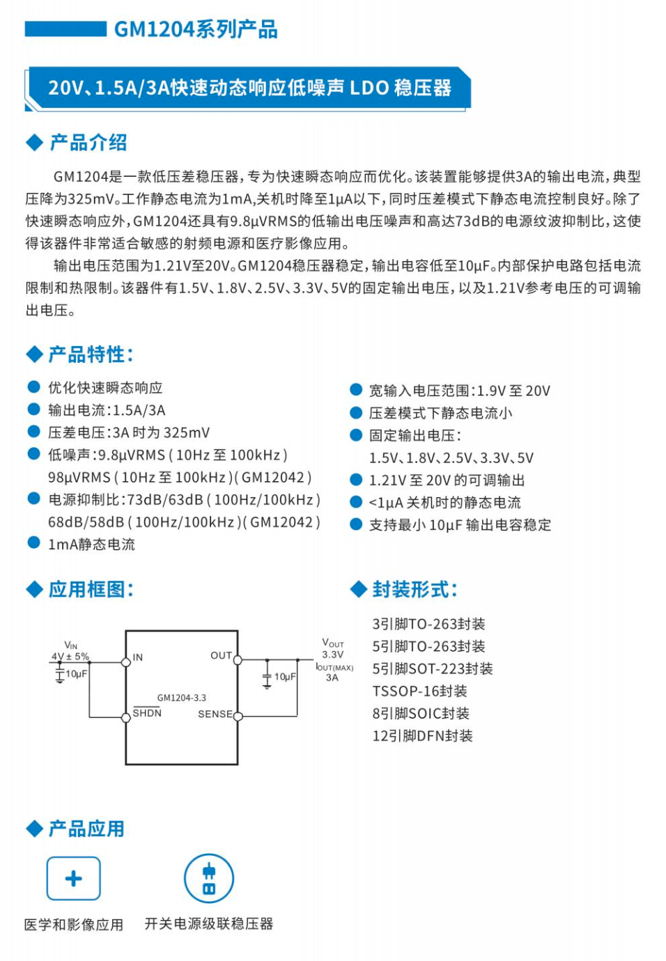 特点是高压,大电流,有着可调/固定输出,用途:工业系统主 LDO。