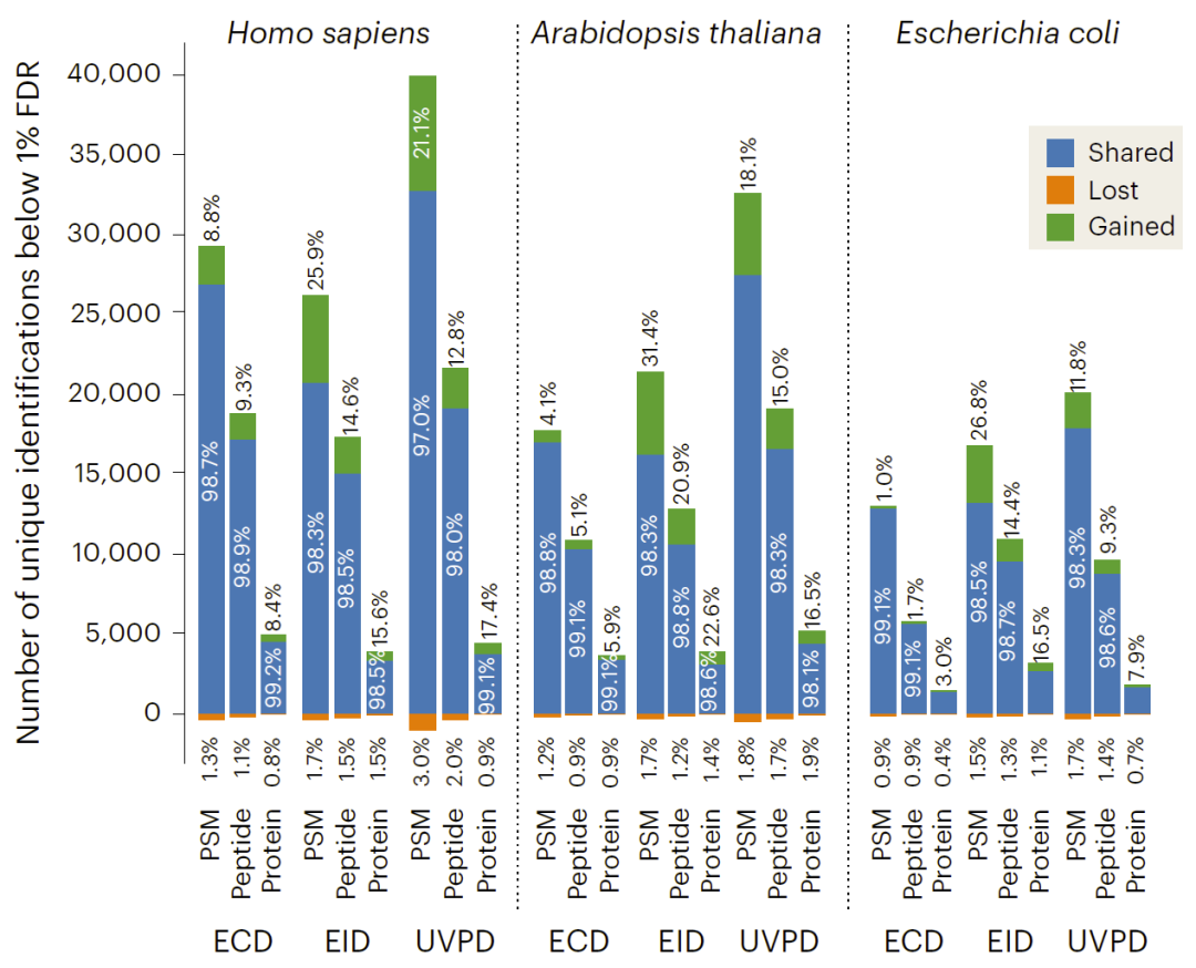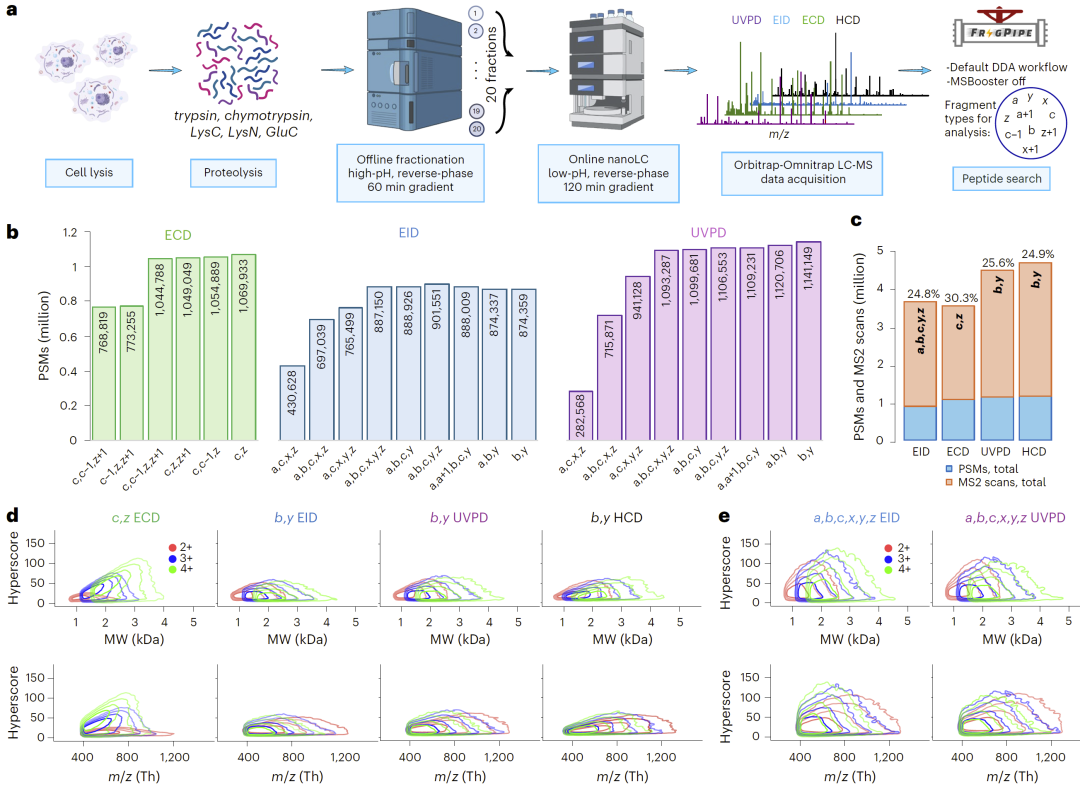 图2: 大规模自底向上ECD、EID、UVPD和HCD碎裂数据分析。