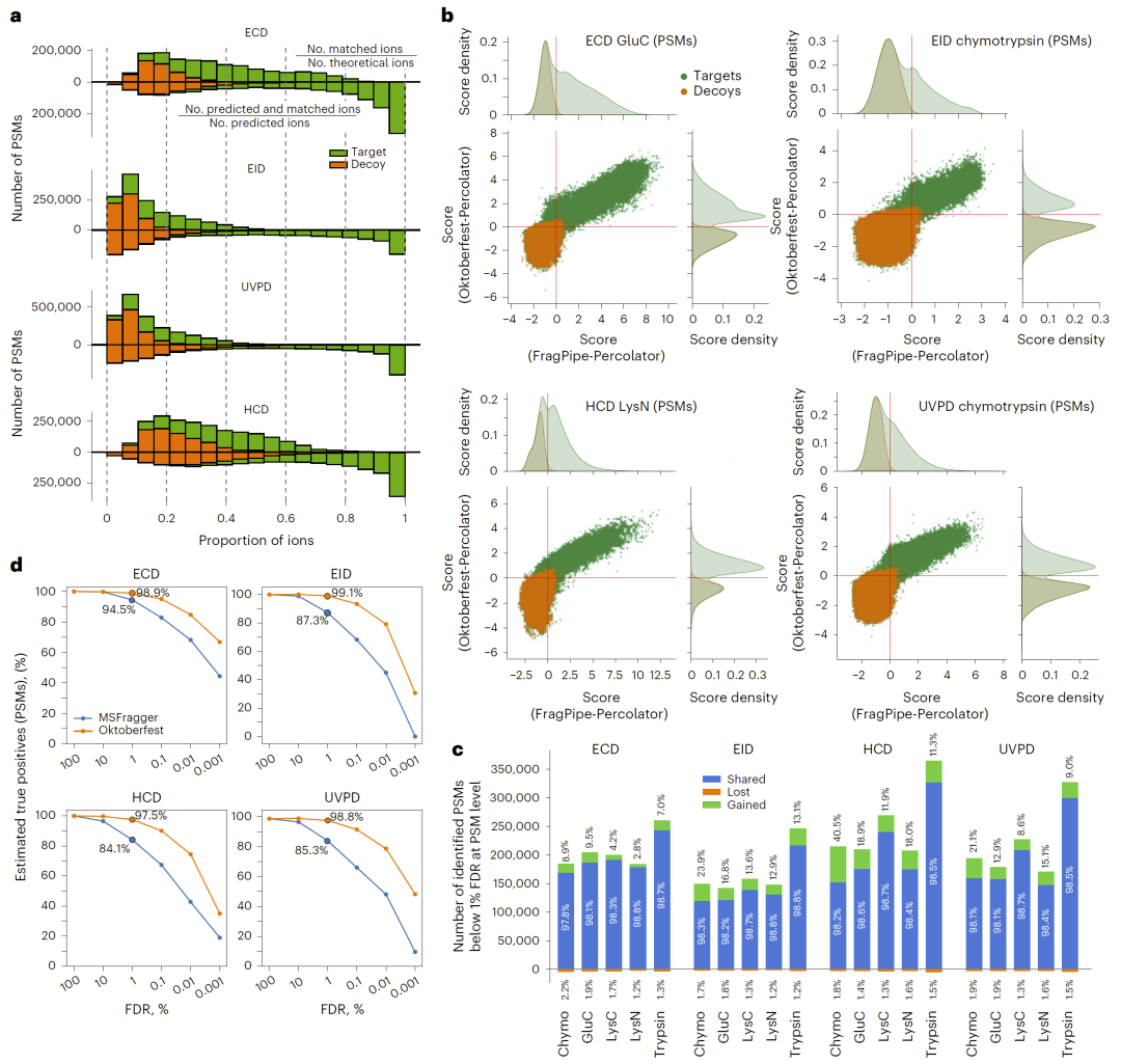 在实际分析中,该模型用于生成理论谱图,并将这些预测结果用于数据库搜索,从而使搜索算法能够同时匹配多种碎裂模式产生的谱图。这样可以在不改变标准LC-MS实验流程的情况下,利用替代碎裂技术提供的额外信息。