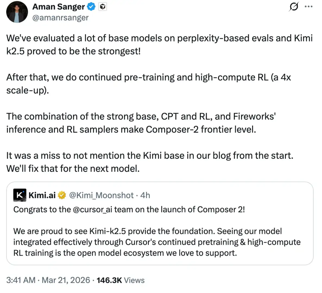 就在争议正热时,Kimi和Cursor官方出来正面回应。