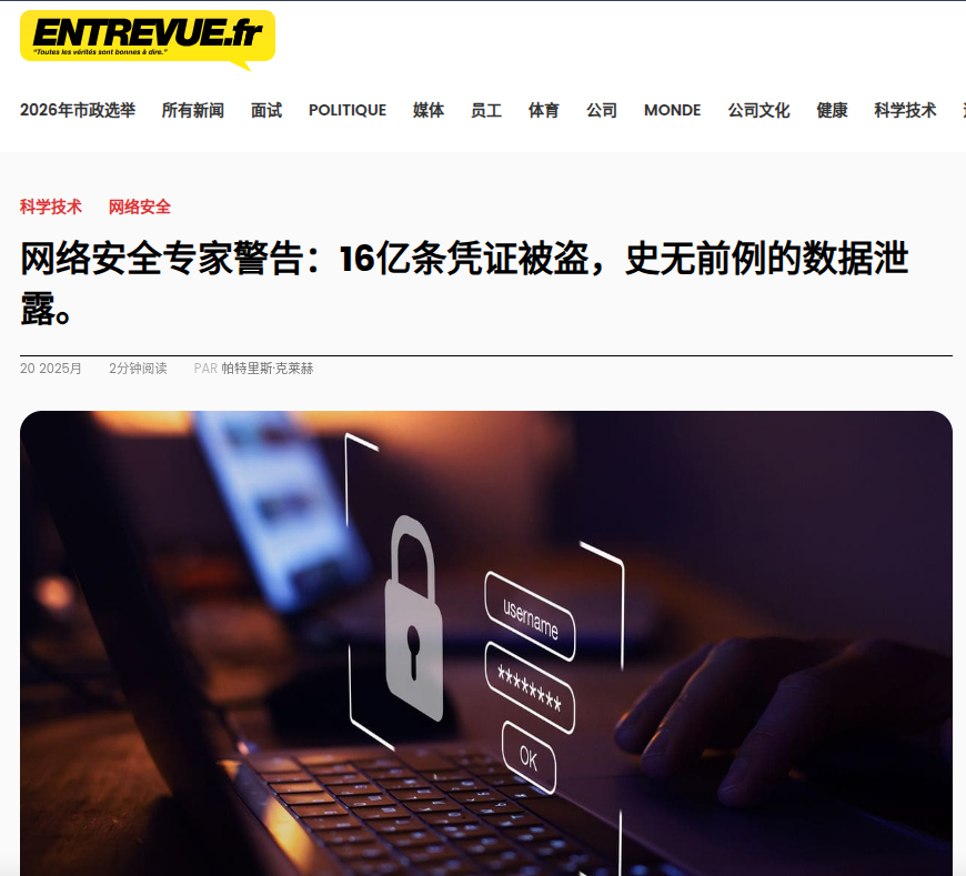 数字身份已成为网络空间的核心入口,账号密码仍是最普遍的认证方式。用户习惯跨平台复用同一套凭证,大幅降低攻击成本。2025 年公开的 16 亿条用户凭证泄露,涉及约 3.5 亿条唯一记录,来源包括邮箱、用户名、明文 / 弱加密密码、Cookie 与访问令牌,由 Infostealer 恶意软件长期收集,经暗网扩散与撞库攻击放大危害。事件暴露终端防护薄弱、密码策略失效、跨平台信任过度、企业合规不足等深层问题。