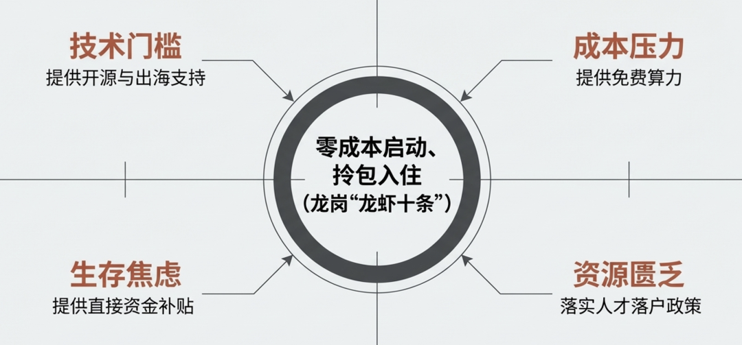 很多人说“龙虾十条”是“宠虾天花板”,正因它精准击中AI创业者四大痛点:技术门槛、成本压力、资源匮乏、生存焦虑——每一条都踩在需求上,这是它成为全国标杆的关键。