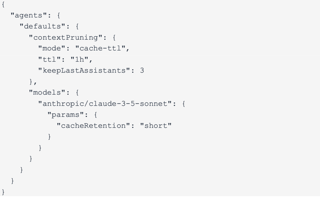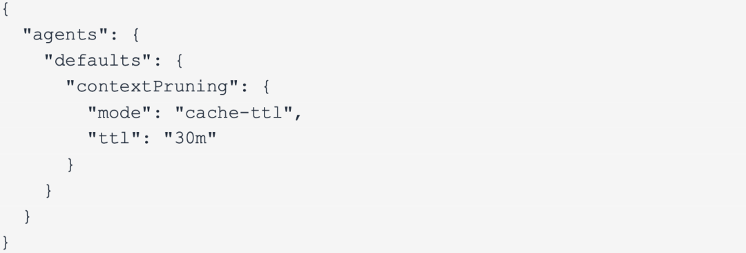 •mode: "cache-ttl" 是最关键的开关,会在缓存失效前自动修剪上下文。