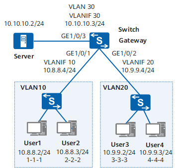 [Switch-GE1/0/3] port trunk allow-pass vlan 30