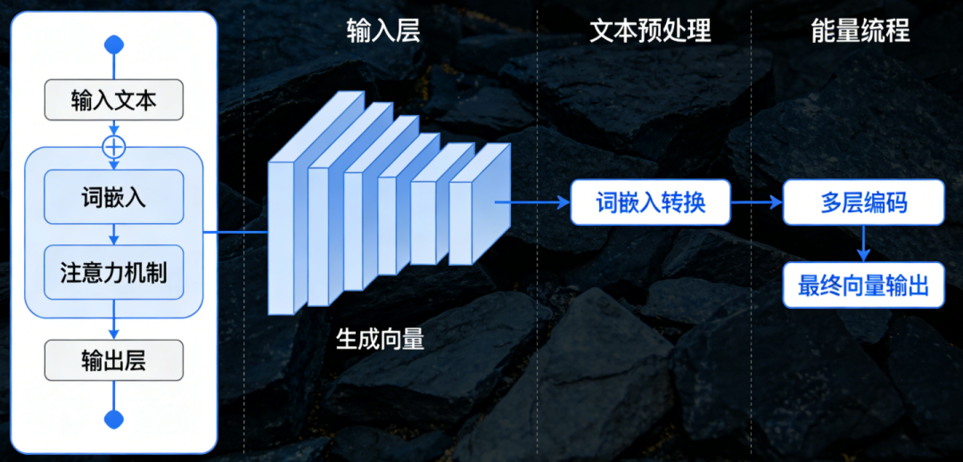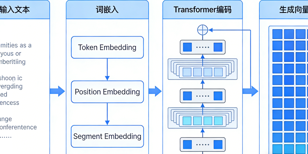 这是流水线的核心工序,加载一个预训练好的Transformer嵌入模型,然后用它来处理上一步准备好的每个文本块,生成对应的向量。这在实际工程中,通常意味着将模型部署在GPU服务器上,并编写代码批量调用,以实现 接近100%的GPU利用率 ,高效地处理百万甚至亿级文档。