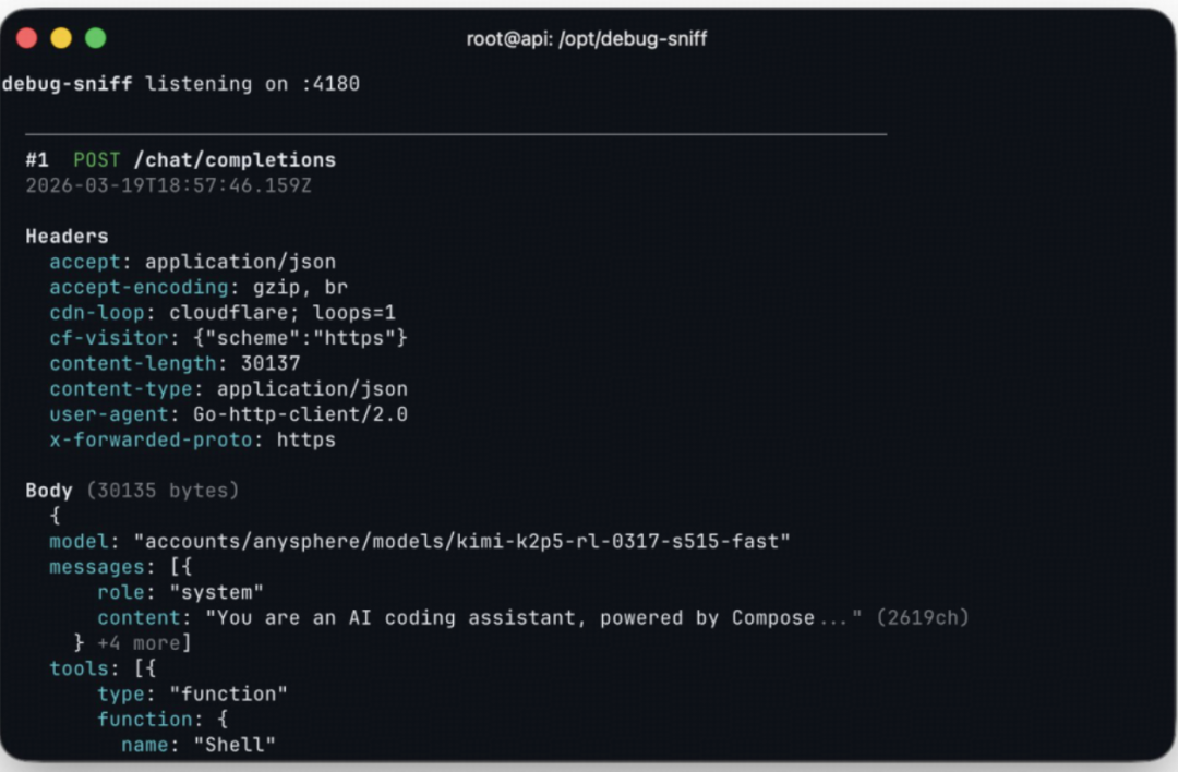 一位名为Fynn的开发者在调试API时,意外截获了一个模型ID:kimi-k2p5-rl-0317。这串字符像一道惊雷,瞬间撕开了Cursor精心编织的“自研”面纱——所谓的Composer 2,底层跑的竟然是中国月之暗面(Moonshot AI)开源的Kimi K2.5模型。