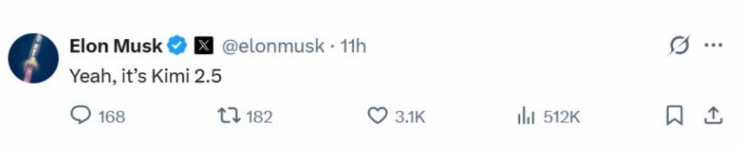 当有人把这一发现发到社交平台X上时,马斯克毫不留情地补刀:“没错,这就是Kimi 2.5。”