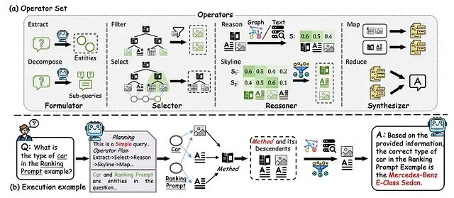Agent会生成由模块化算子组成的动态计划:有的算子沿"信息线索"导航到相关片段,有的负责过滤内容块,有的执行推理或合成最终答案。每个查询根据待解决的问题在索引中走不同的路径,使系统在处理长篇复杂文档时兼顾精度与效率。