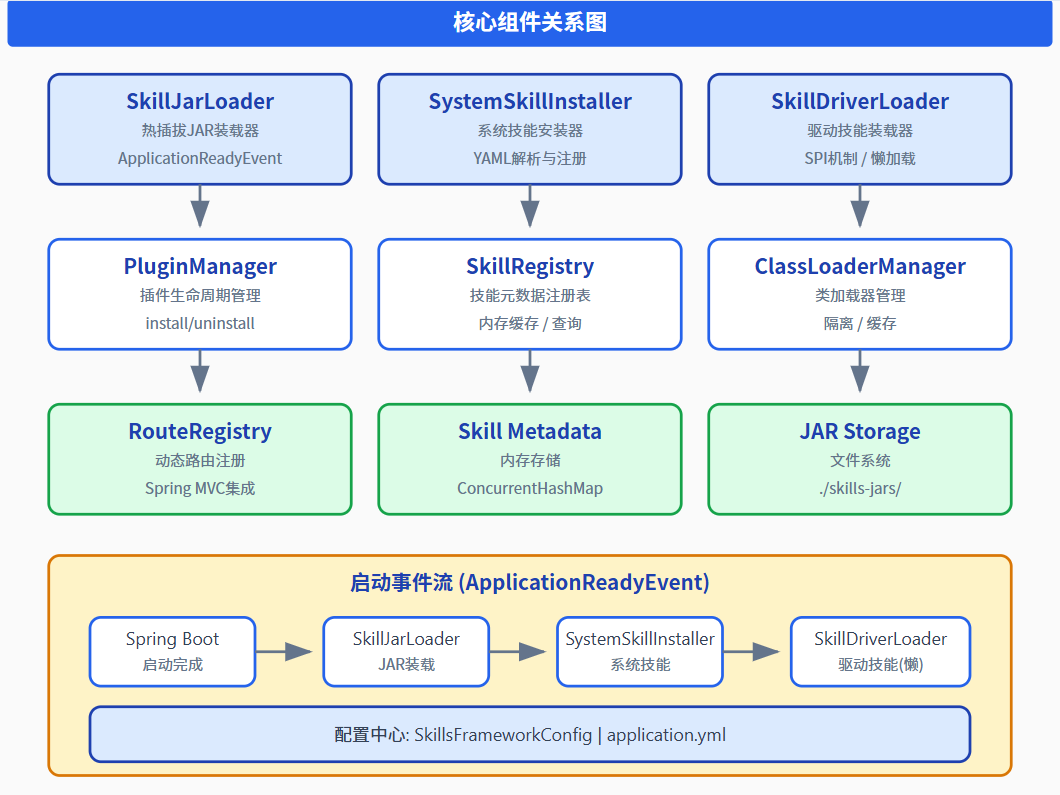 └──▶ SkillDriverLoader (驱动技能 - 懒加载)10:22:00 Spring Boot 启动开始