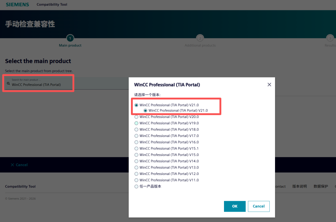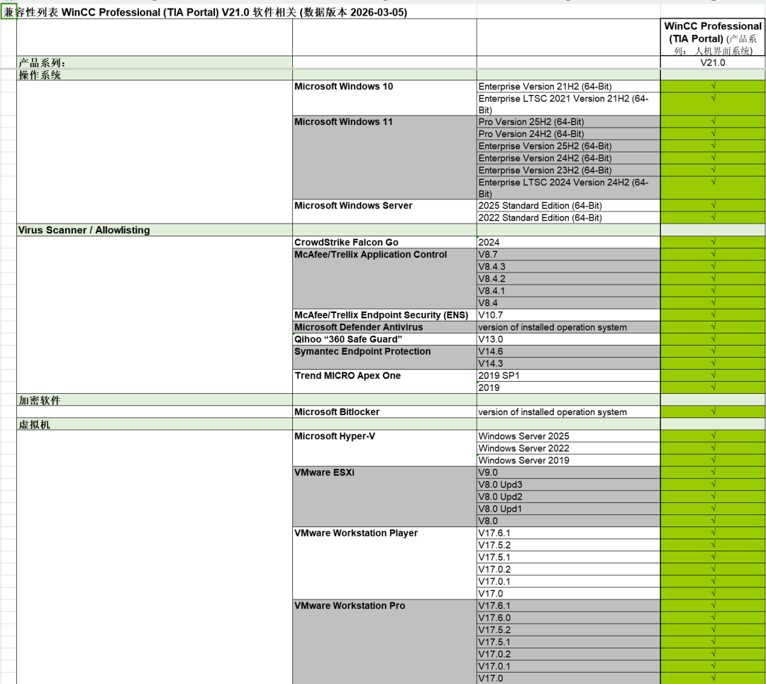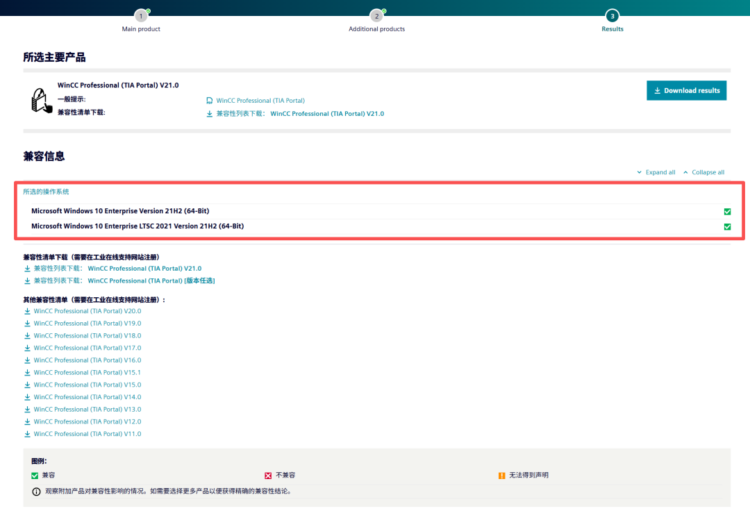 如果要对某一款软件进行兼容性检查,例如在安装博途WinCC V21之前,可以手动检查软件版本的兼容性:
