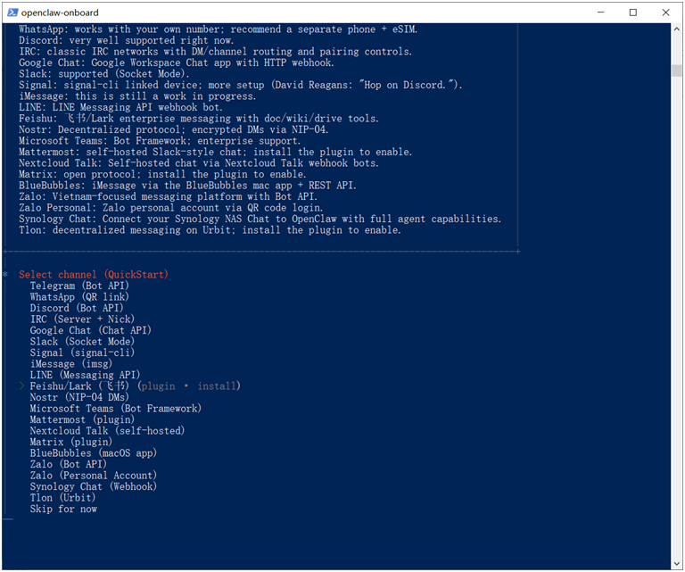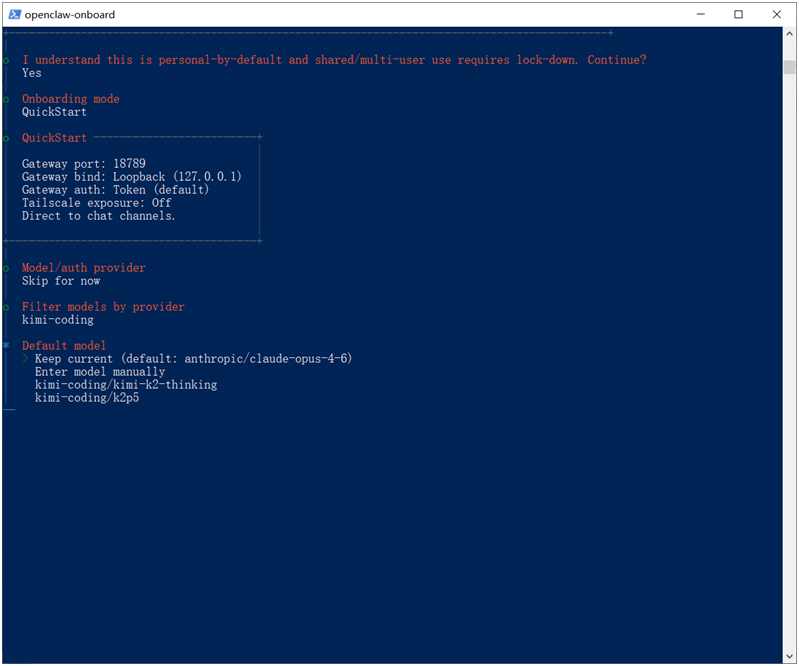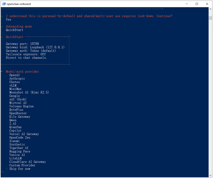 如果有账号选择对应支持大模型,推荐选择Skip for now,后面再来配置