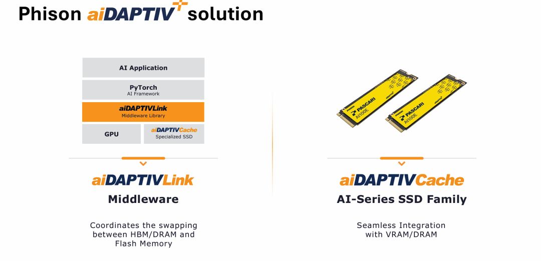 在生成式AI浪潮下,企业与高校急于本地部署大模型,却屡屡卡在显存瓶颈:微调70B模型需1.4TB显存,传统方案逼迫采购数十张昂贵GPU,TCO高企;推理时,长上下文KV Cache爆显存,导致延迟飙升。你是否也面临“算力喂不饱、成本压垮身”的窘境?群联aiDAPTIV+横空出世,通过Flash Offload将NVMe SSD变身GPU显存延伸,单机4张GPU搞定集群级任务。更进一步,E28主控内置DSP引擎,实现“近数据计算”,卸载参数更新,性能飙升40%。这不仅是硬件解耦,更是存储厂商向AI算力上游的精准卡位。中小企业如何以低成本拥抱大模型?存储与计算的边界正被重塑。