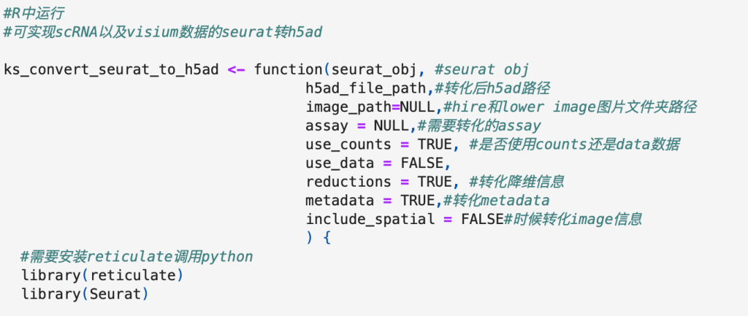 之前介绍过空转h5ad转seurat的操作(空转python版【2】:visium空转h5ad数据转化为seurat测试)。类似于scRNA一样,小伙伴对于空转seurat转h5ad有很大的需求。但是网上没有直接的方式或者说简洁的办法能够轻松实现空转数据的转化。这里以visium空转为例,介绍两种方式,第一种是比较迂回的路线,也算是后续函数的思路。第二种方式整合了一个函数,能够一步到位实现空转visium seurat到h5ad的转化,且相当于统一了scRNA以及空转的转化,次函数也能实现普通房scRNA数据seurat转化为h5ad。对于空转,函数只适用于单个sample的转化!