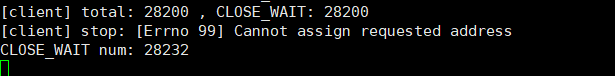 print "[client] total: %d , CLOSE_WAIT: %d" % (count, len(sockets))