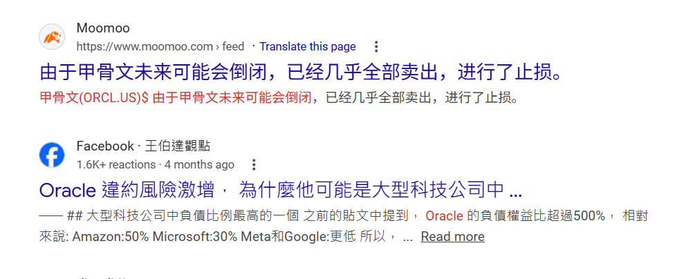 所以这些投资,金融类的博主,推演出,ORACLE 如果继续如此,倒闭,资不抵债,甚至从这个地球上消失,是指日可待了。