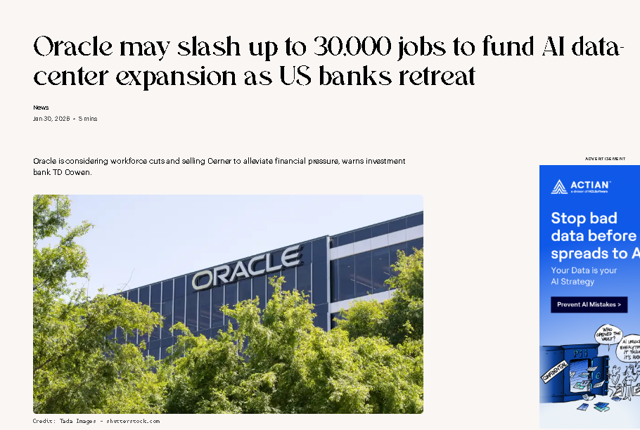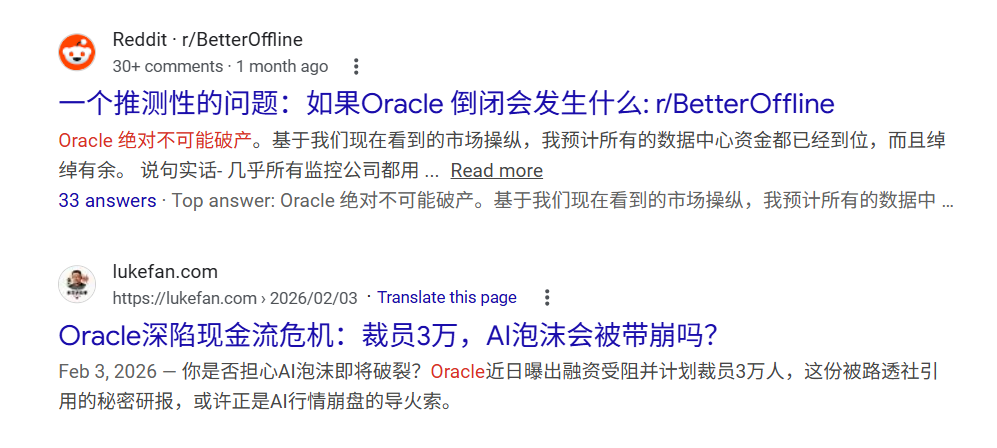 我就把这条视频完整的看完,OMG,原来ORACLE 要崩盘是真的,2026年是真热闹。抖音的推流机制,最近几天,一些投资,经济,金融类的知名大V,对ORACLE要崩盘的信息的评论,确认,甚至预测它倒闭的时间都出来了。