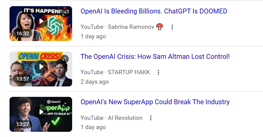 OPEN AI何去何从,已经不重要了,如何能先出泥沼,让自己获得后续的巨额投资,谁来接单,是他现在第一个要想的,所以,OpenAI 后续的骚操作昨天已经开始了,10亿美元的合同都不要,自废sora。