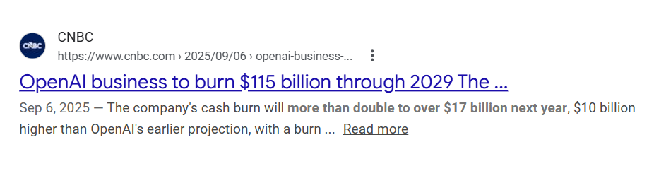 这也是为什么,我的上一篇文章说,美国军方和OPEN API达成协议,开启AI 杀人的训练,因为OPEN API缺钱,所以什么都答应,但就是这样,OPEN API还堵不上自己烧钱的速度。