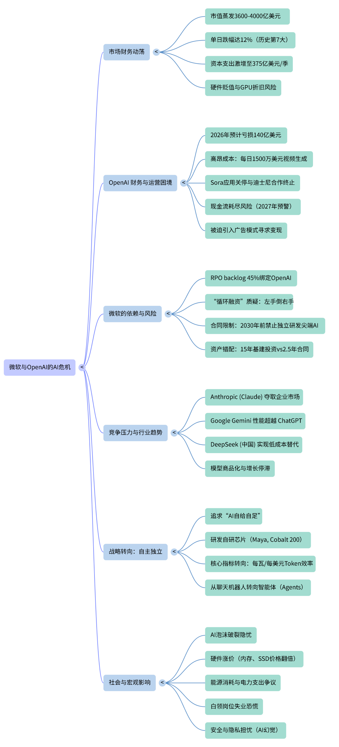 4 微软的“自给自足”战略与反竞争指控,微软正在积极减少对 OpenAI 的依赖,转向“真正的自给自足”。微软 AI 负责人 Mustafa Suleyman 表示,公司正在建立自己的基础模型和训练团队,OpenAI 高管指责微软的行为具有反竞争性 。例如,OpenAI 计划转型为营利性公司以公开融资,但微软作为主要利益相关者,其推迟批准的行为被认为阻碍了 OpenAI 的独立发展,甚至可能在 OpenAI 衰落时伺机将其吞并。